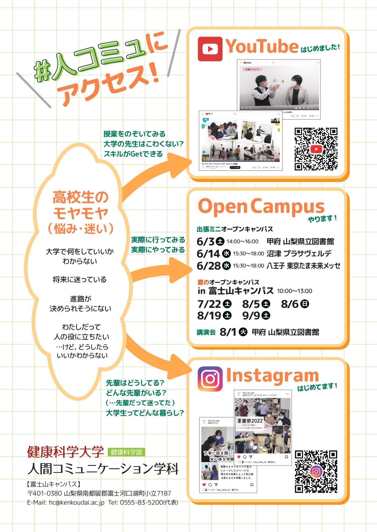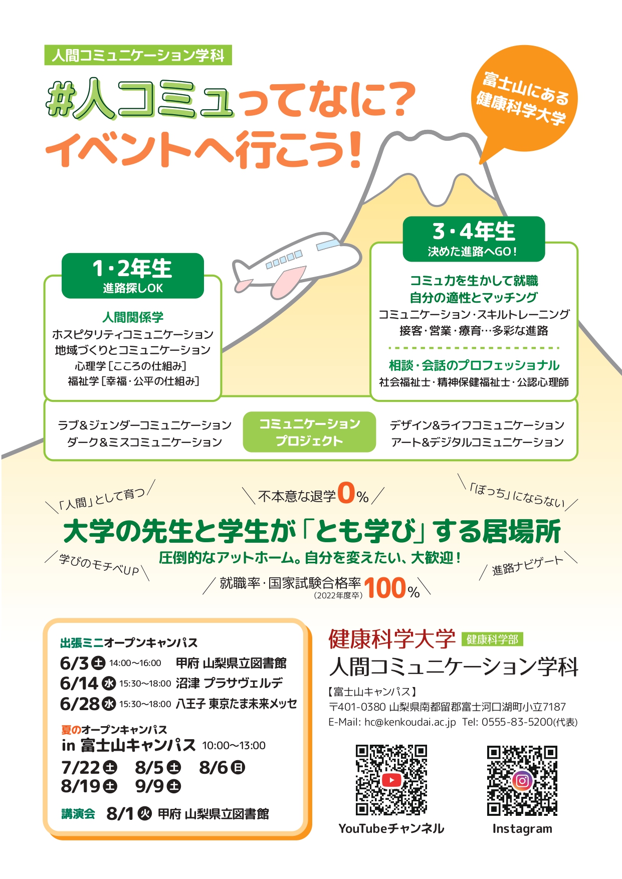 催事名 | 富士山にある健康科学大学 人間コミュニケーション学科 進学ガイダンス |