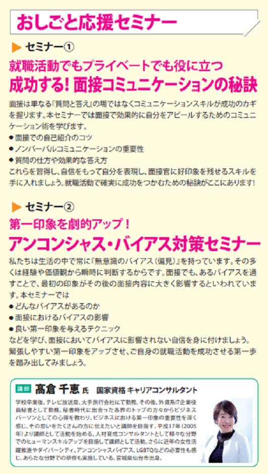 就活だけでなくいろいろなシーンで役に立つセミナーや、