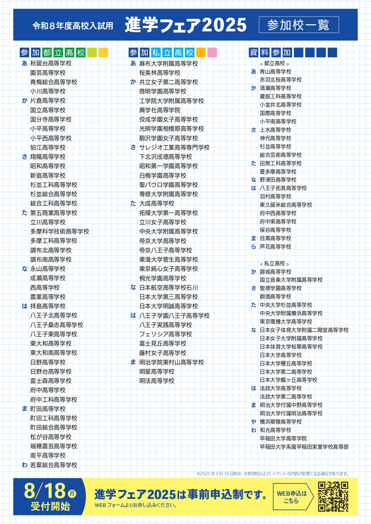 「興学社学園 進学フェア 2025」は中学生を対象とした高校進学説明会です。受験生はもちろん、保護者の皆様、さらには中学1年生・2年生にも最新の受験情報や高校からの「生の声」を提供することで、受験への意識を高めていただくことを目的としています。