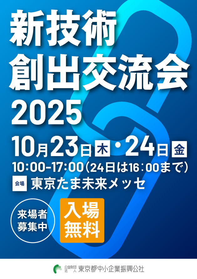 新技術創出交流会とは、企業間の技術連携を目的とした都内最大級の製品展示会であり、本年度も東京たま未来メッセにて開催されます。