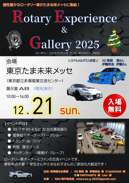 また、将来、ロータリーに乗ってみたいけれど、「近くで現車を見る機会がない」とか、「メンテナンスって大変なの?」など、現オーナーに聞きたい方もいるはず。そんなリアルな交流で盛り上がる…それが「Rotary Experience & Gallery」です。