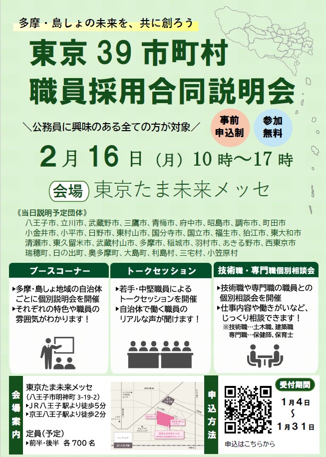 都内39市町村で職員採用合同説明会を開催します。