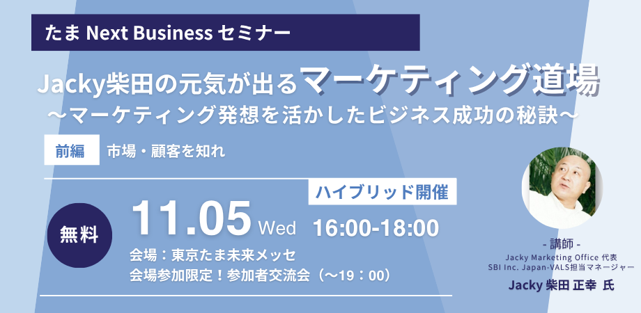 たまNext Businessセミナーシリーズ第4回 Jacky 柴田の「元気が出るマーケティング道場」【第1回】市場・顧客を知れ