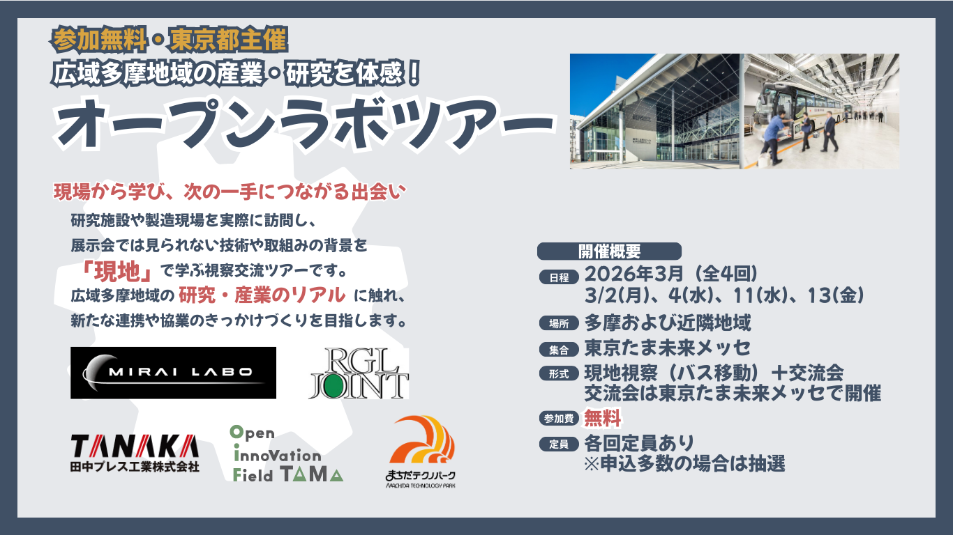 広域多摩地域の視察・交流プログラム「オープンラボツアー」を開催します!